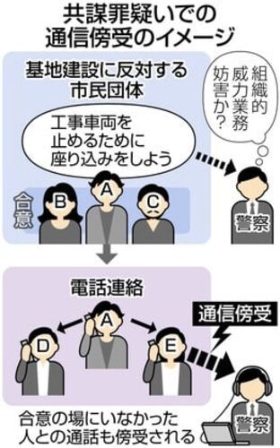 もともと、盗聴法=通信傍受法の適用拡大は国民の人権侵害の可能性が大いにありました。 <通信傍受法> 犯罪捜査のために裁判所が出す令状に基づき、電話や電子メールの傍受を認める法律。2000年の施行時には薬物、銃器、集団密航、組織的殺人の4類型…