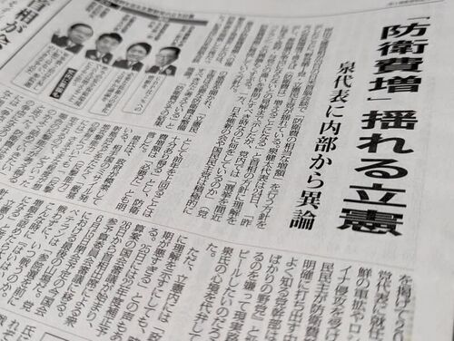 ウクライナ戦争に浮足立って防衛費増大を求める有権者の声に動揺する泉立民代表。しかし防衛費増額を求めない有権者は23~36%。支持率が10%未満の立民はこの中道穏健票を取り込み、専守防衛論を貫くべきだ。