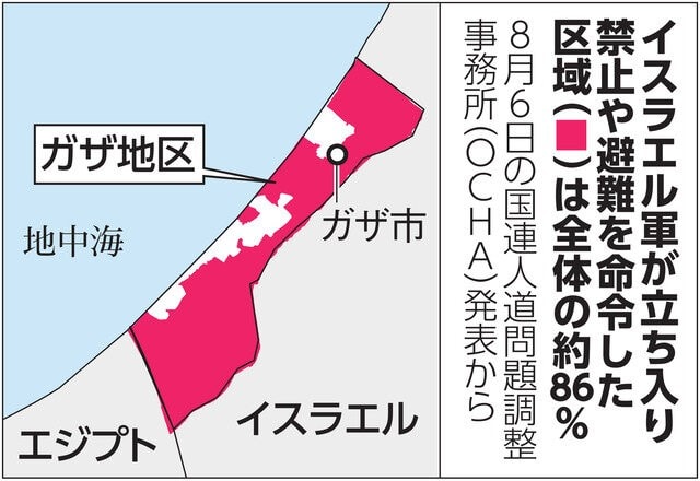 パレスチナ自治区ガザで攻撃を続けるイスラエルの首相府は8日、ガザ北部にある最大都市ガザ市を制圧する計画が、安全保障関連の閣議で承認されたと発表した。ネタニヤフ首相は軍の支配をガザ全域に広げる意向も明言し、作戦の拡大に向けた動きを強めている。飢餓など人道危機が極まる中、戦闘がさらに長期化する恐れがある。▼国際面=市民ら悲痛