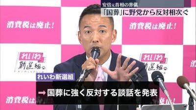 「神格化されるような国葬を行うこと自体がおかしい」(れいわ)
