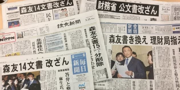 2018年3月12日、財務省は森友学園への国有地売却に関する14枚の決裁文書が300カ所以上も書き換えられていた事実を認めた。