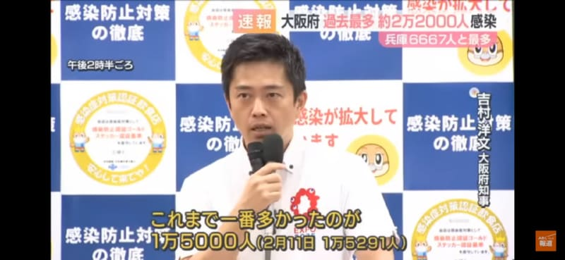 【過去最多】大阪新型コロナ2万2000人見込み 吉村知事、この傾向は今後も続くと思われる…