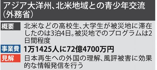 被災地以外で復興予算が使われるのは、政府が昨年7月に策定した復興基本方針で、全国各地の防災対策費 の計上が認められたため。震災後、地方から被災地以外の防災対策も強化するよう要望が寄せられ、「5年で19兆円」と見積もった復興費のうち、1兆円程度 を被災地以外でも使う方針が決まった。財源には、全国の自治体が集める住民税の増税分などがあてられる。