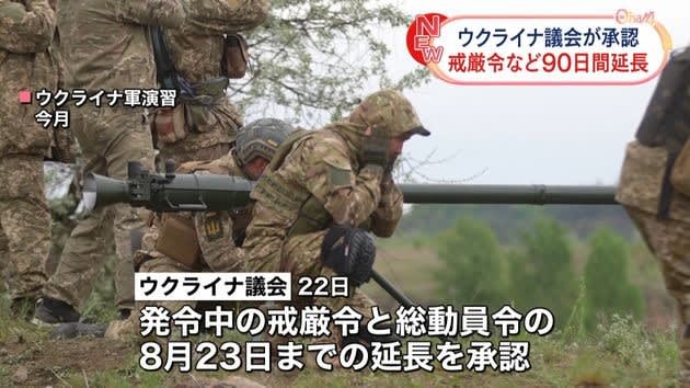 ウクライナ議会は22日、現在発令中の戒厳令と総動員令を、8月23日まで90日間延長することを承認しました。